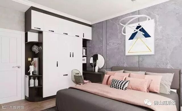 配色尽量简洁,不要超过三种。毕竟占据卧室较大面积,不宜太过花哨。