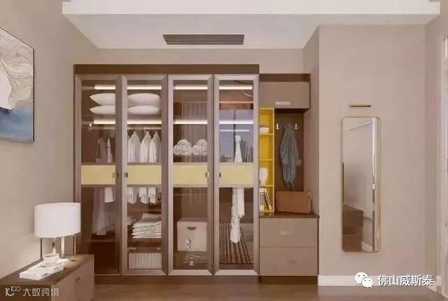 玻璃柜门,颜值高,一目了然,找衣服更方便。但要求经常整理,不然稍微一乱就原形毕露。而且,玻璃门难清理也要做好心里准备。