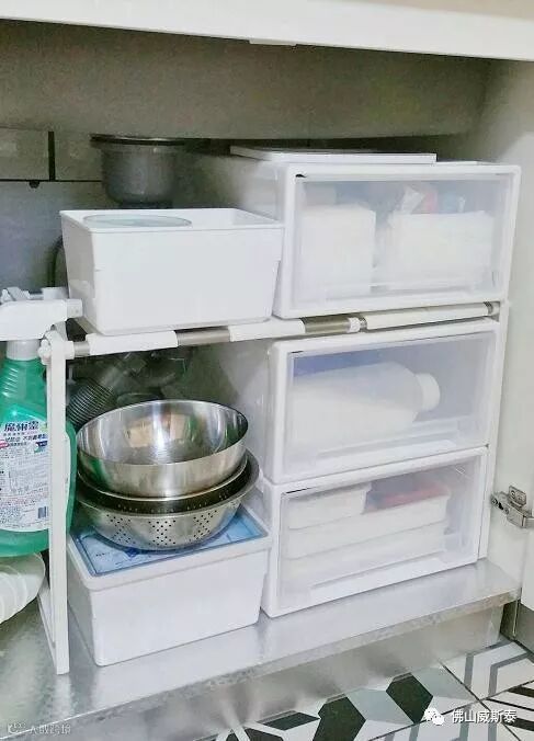 还可以把它放在水槽柜还能收纳厨房用品,整洁好拿不会乱。