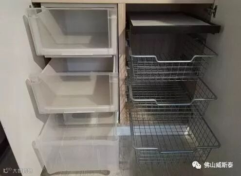 我们也对比了抽屉式收纳盒和抽拉篮的收纳量,两个所占用的空间和收纳容量基本是差不多的。