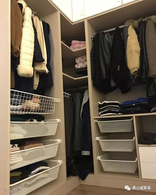 抽拉衣篮算是抽屉式收纳盒的另一个版本,比较适合家里有大衣柜或者衣帽间的朋友。对于较深的衣柜,可以选择定制同等深度的抽拉篮。宜家的pax衣柜组件,就是采用这种的收纳方式。