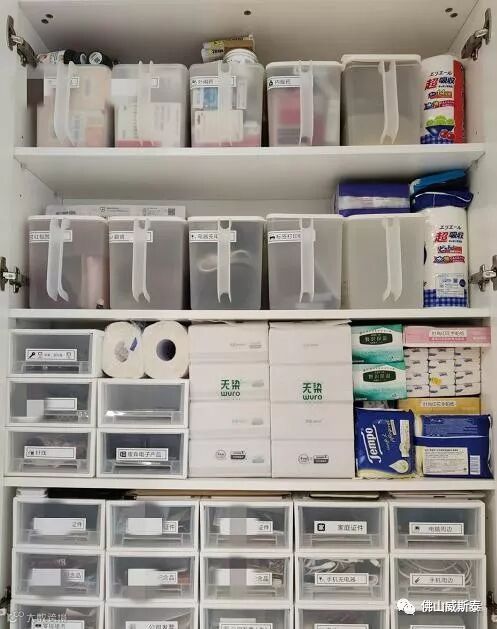 抽屉式收纳箱使用的范围非常广泛,选择小尺寸的还可以放在储物柜分类收纳家居杂物,贴上标签让收纳更细致人性化。