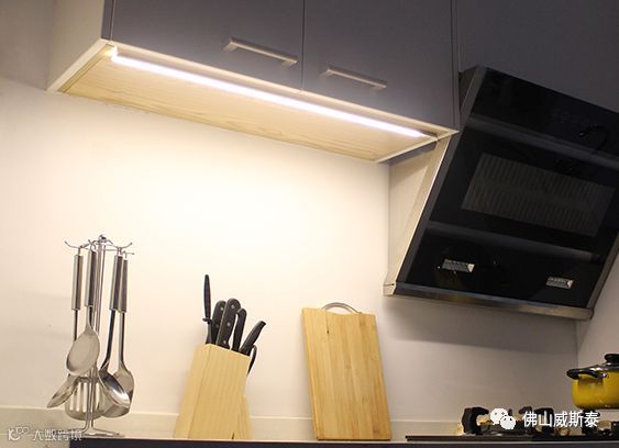 很多人对于灯这点不理解,认为厨房不是有灯了吗?为什么还要安装灯?我要告诉大家的是,橱柜灯虽然是很小的一个环节,但是其实用性真的是非常非常的高,据我从客户中了解到的信息:所有装了橱柜灯的就没有后悔的,所有没装的看过别人家的橱柜灯之后,就没有不后悔的,真的非常实用,毕竟,厨房的灯并不能照亮橱柜的黑!所以,在定制橱柜的时候,必须要事先给橱柜灯留好线路和空洞,避免安装之后无法走线!
