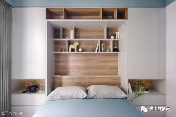 ⑶衣柜在床头一侧或两侧或两侧+上方设置时面积较小,所以对卧室的储藏空间需求不大的比较适合。