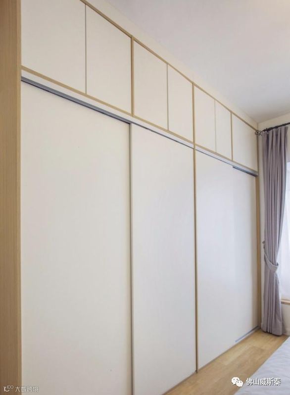衣柜的高度最好可以到顶,增加储物空间,避免柜子上方时间久了积灰,既使是在柜顶放物品,物品上也会积灰。
