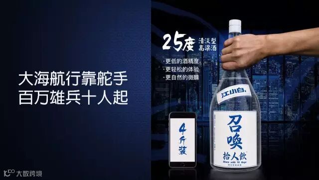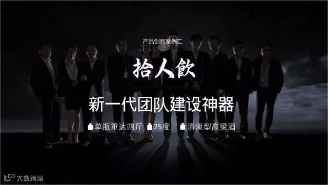 第二款产品:拾人饮。这款单瓶重达四斤、只有25度的清淡型高粱酒聚焦很小的市场细分领域:单位的团队建设,如开阅读会、年会、部门聚餐。