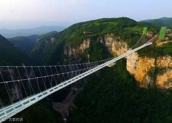 张家界大峡谷玻璃桥,主跨430米,一跨过峡谷,桥面长375米,宽6米,桥面距谷底相对高度约300米,无论是长度还是高度都位居世界第一!被美国CNN评为了全球11座新建最壮观大桥。
