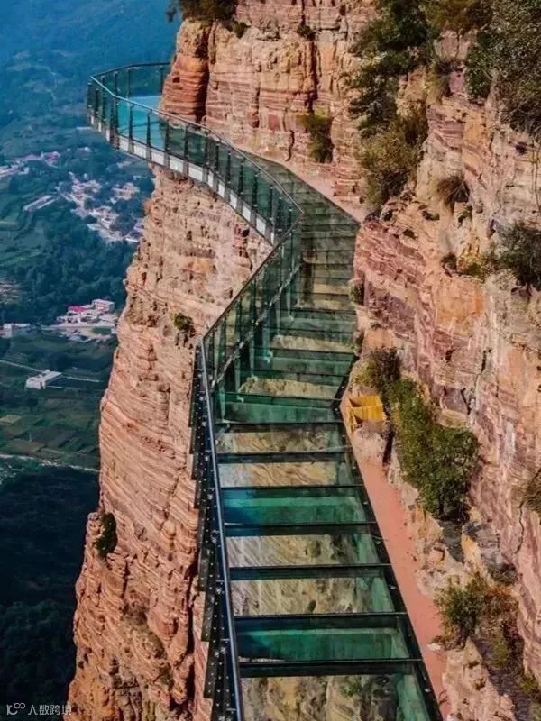 美国著名旅游杂志《漫旅》前两天刊发一则新闻,就专门报道这座玻璃栈道!一条测试游客心理承受临界值的玻璃栈道,当他们从一个惊掉下巴的高度往下看时,能够忍受多少。但这一条在中国河北的栈道,通过铺装看起来像要在人们脚下开裂的玻璃板,把这一临界值推向了新高度。