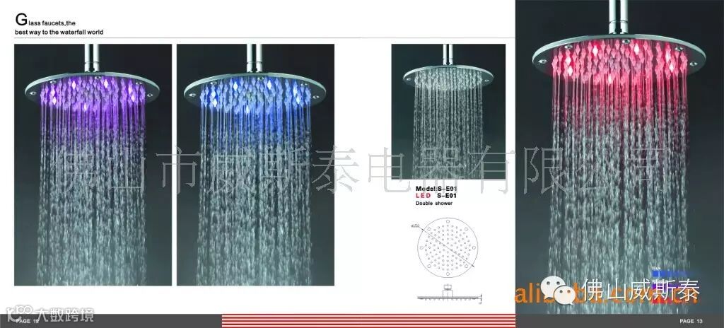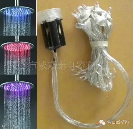 水力发电供电,低压安全;有水灯亮,无水灯灭,节能环保;水温不同,颜色各异;自动变色,凭君选择;