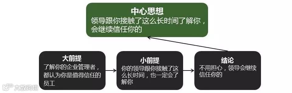 比如,对关关的问题分析,其实是先用了归纳论证从我和小曲都愿意聘用你两个方面得出“了解你的企业管理者,都认为你是个值得信任的员工”,再用演绎论证得出,“你的领导会选择信任你”的结论。