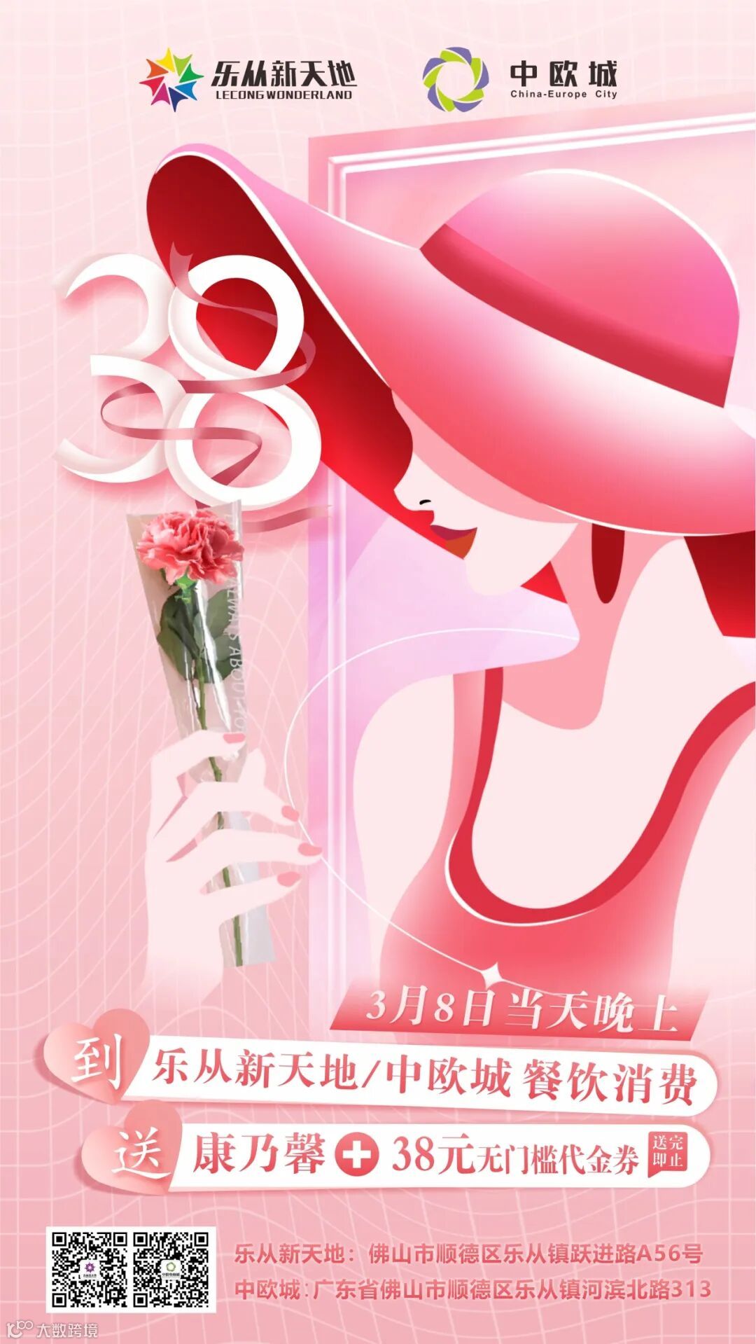 赠送康乃馨+38元无门槛代金券