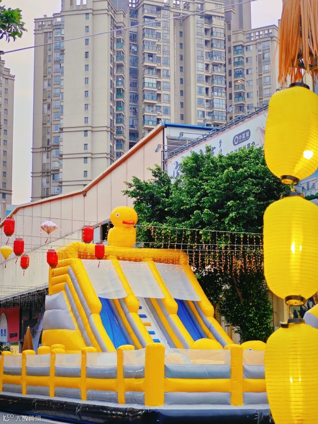 明黄色的巨大鸭鸭城堡~