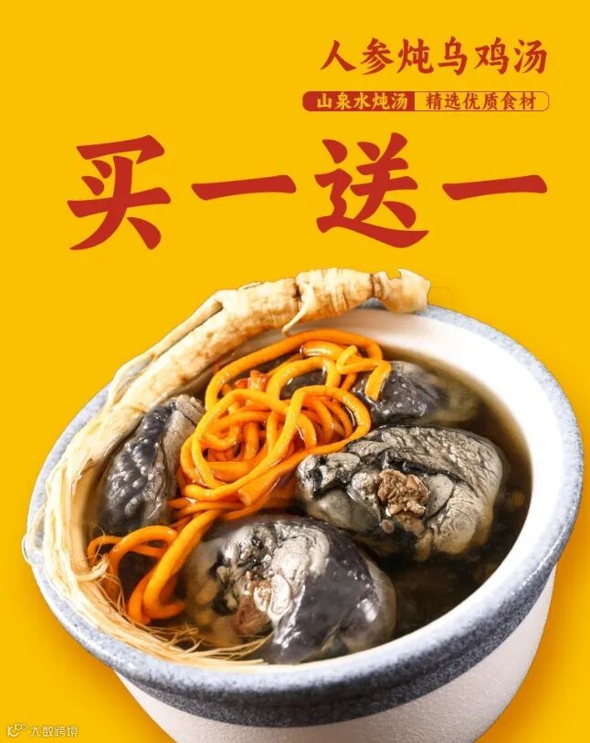 人参炖乌鸡汤买一送一
