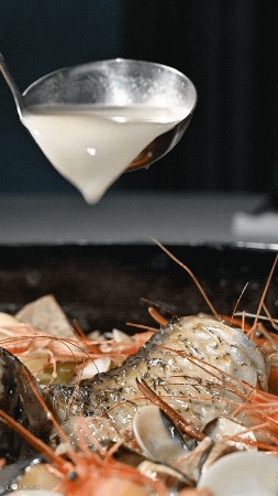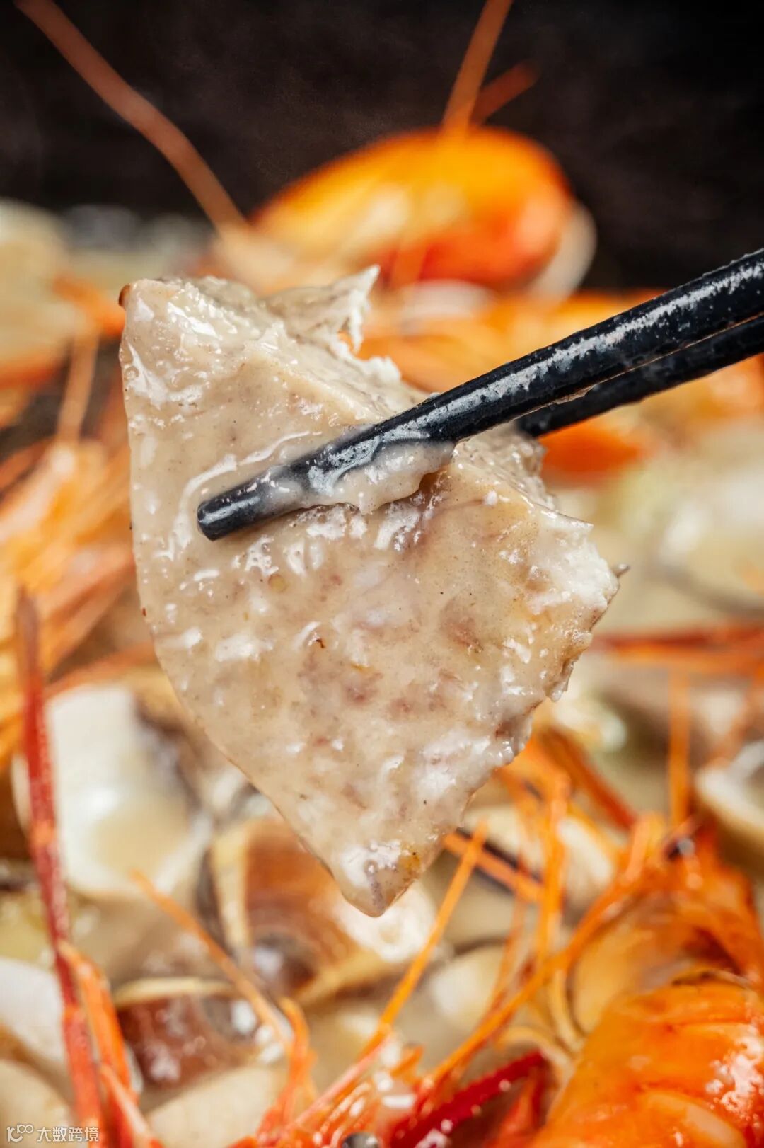焖鱼+羊肉=超鲜美的鱼羊鲜!在焖鱼里加上一份东山羊,在鱼肉鲜甜中又增添一丝羊肉香气,绝!