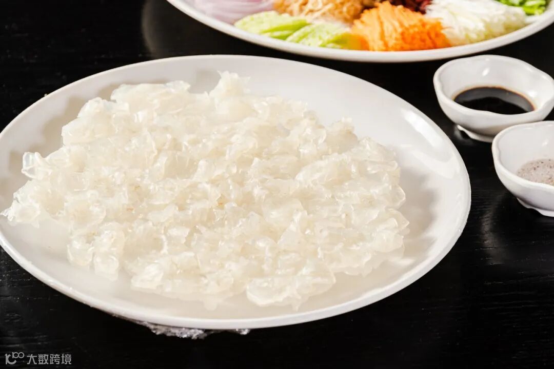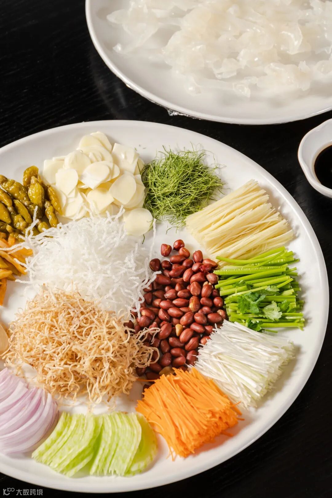 夹起一片晶莹剔透的鱼生,搭上标配多种配菜,一齐捞个风生水起!