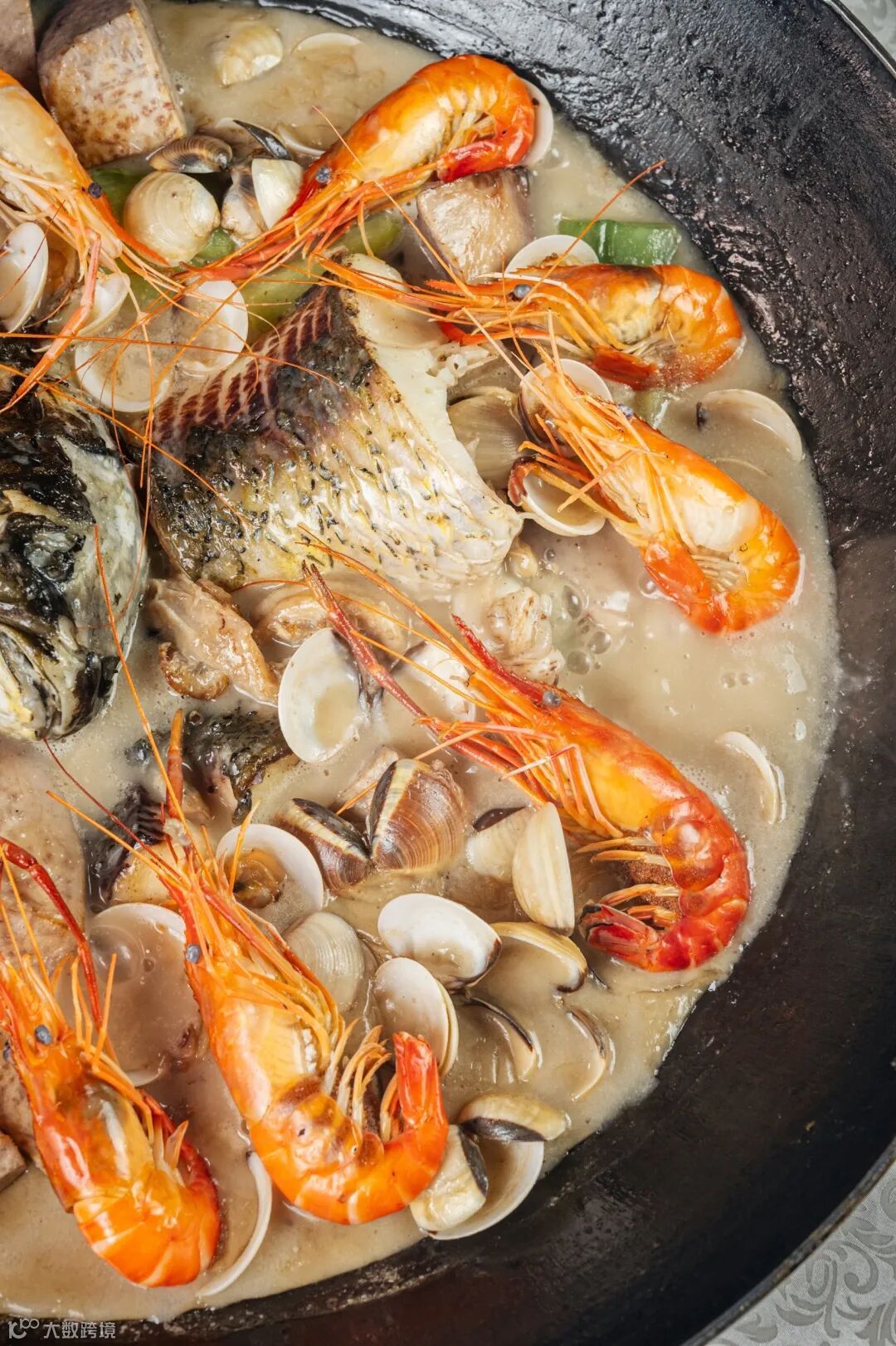 焖鱼还有很多人气配菜添加,强烈安利佛手瓜、芋头、白贝、罗氏虾!佛手瓜和芋头吸饱鲜美的汤汁,入口即化,吃完之后嘴里还会一直回甜!