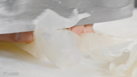 师傅是有着20多年资历,手起刀落鱼就变成了一片片晶莹剔透的鱼生,厚薄适中,看起来跟果冻似的!