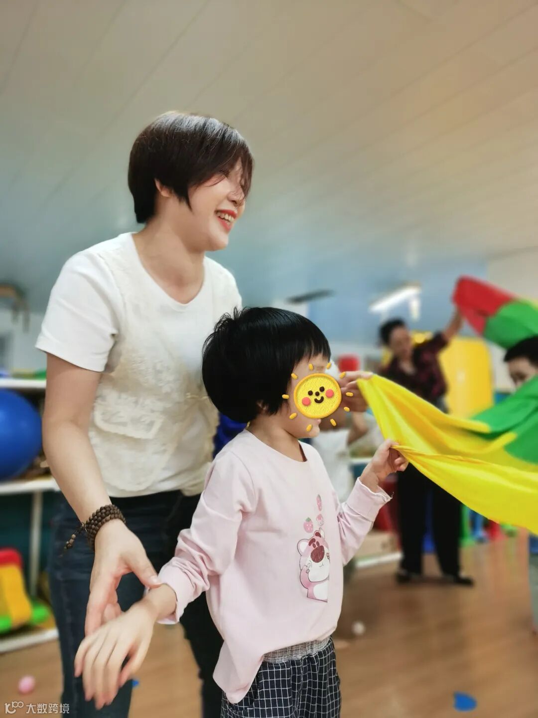活动当天,时代姐妹花还有4名姐妹志愿者走进星晴中心,参与到课程中来,孩子们玩得不亦乐乎。