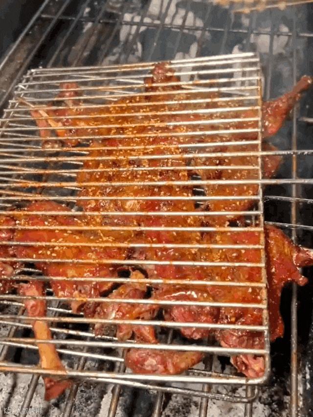 乳羊经过秘制卤汁按摩后上架炙烤