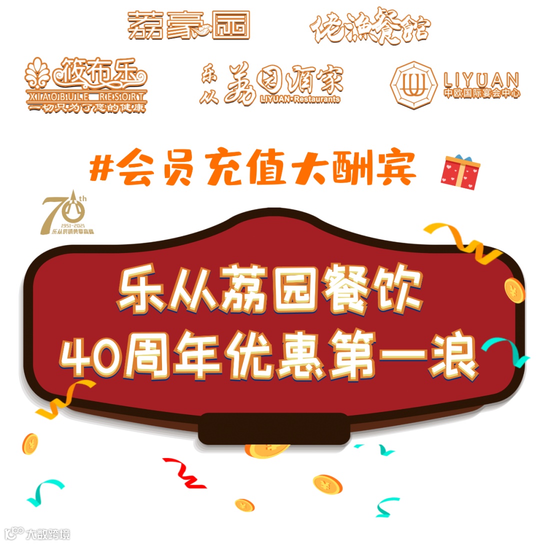 顾客可在#乐从荔园餐饮旗下五家门店充值
