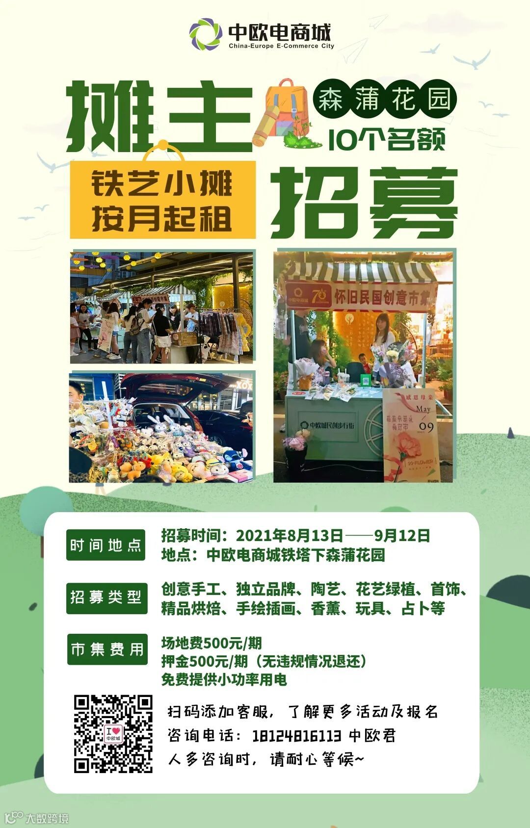 摆摊时间:自报名成功起一月以内,自由时间自主开摊。
