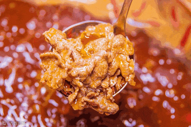 肥牛片薄厚适中,在麻辣牛油锅中几起几落便可涮熟,蘸上调好的麻酱料,咀嚼的过程中一直能感受到香气和美味,嫩滑可口又不失嚼劲,充分满足了食肉欲!