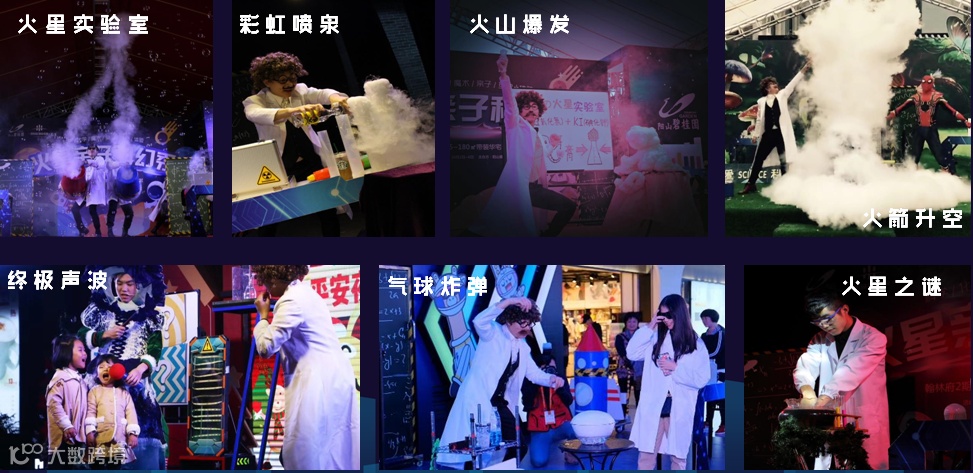邀请专业表演团队在现场举行火星科幻实验室演出,结合表演,魔术,科学,戏剧,教育等元素,互动性强烈,让现场中小学生在玩乐中学习科学知识。