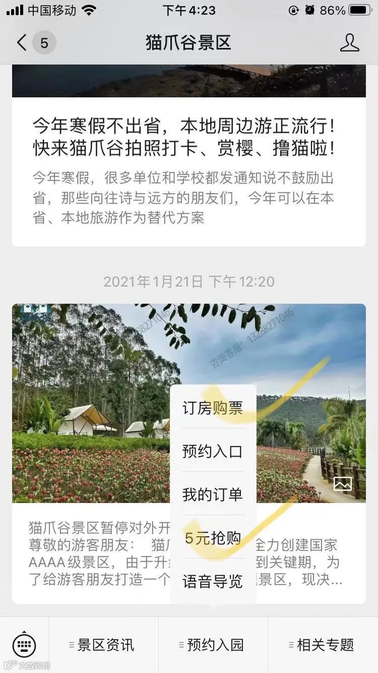 并附言:我要去猫爪谷景区过年!