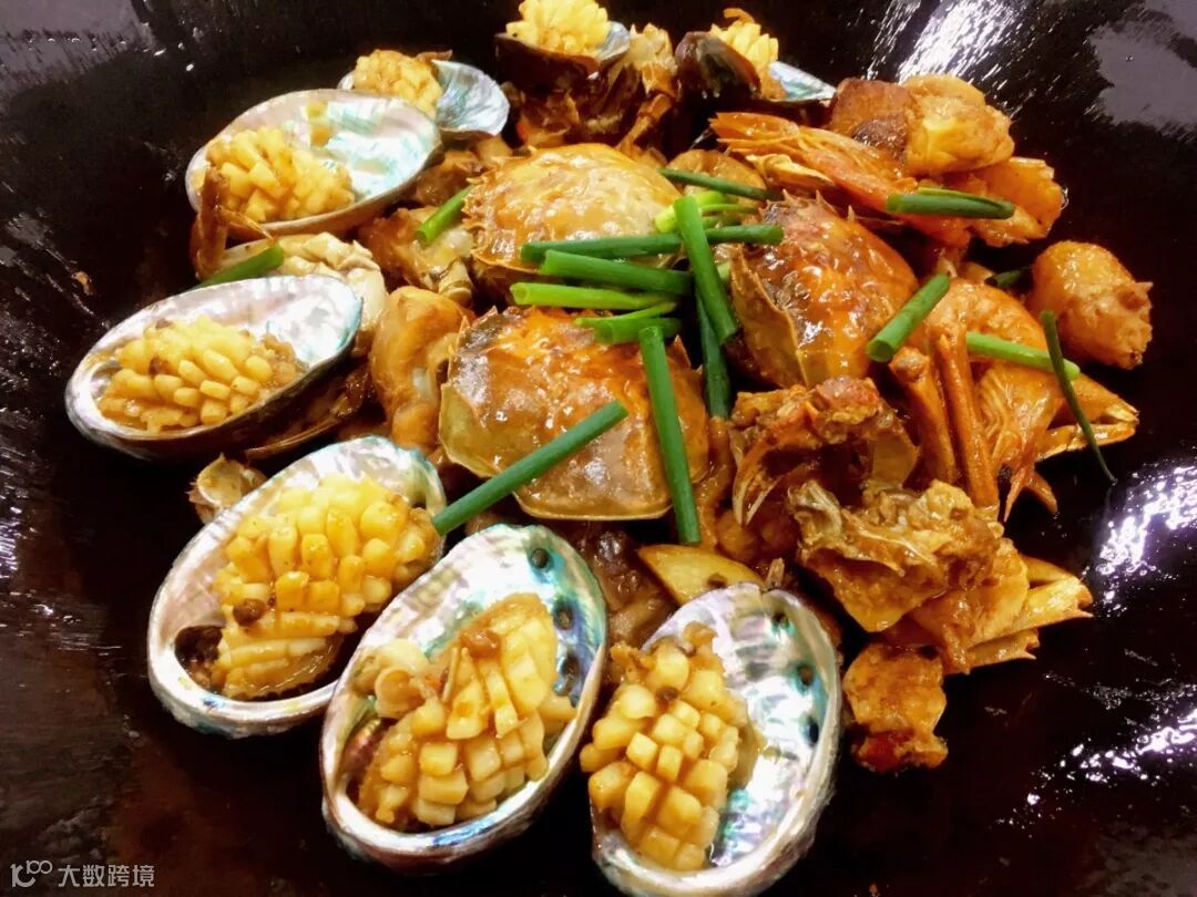 鲍鱼、肉蟹、鲜虾、阳山鸡,究竟有多鲜!(破音),一锅混搭各种鲜味食材,满足你的多个需求,一口虾,一口蟹,没有比这更快乐!