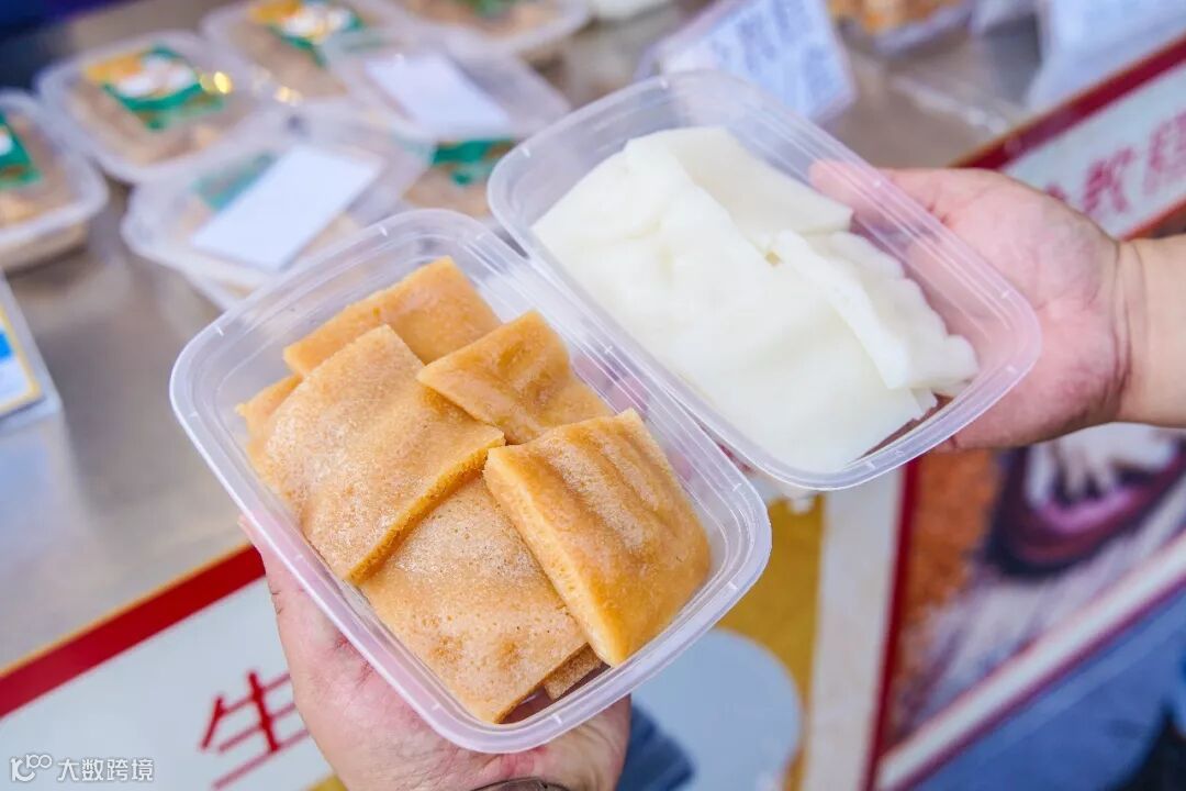刚出炉的伦教糕光洁如镜,雪白晶莹;糕身横竖孔眼,均匀有序;质地爽软、滑润而富有韧性,折时不留折纹;食味清甜、爽滑,正是这次美食节推荐必点美食。