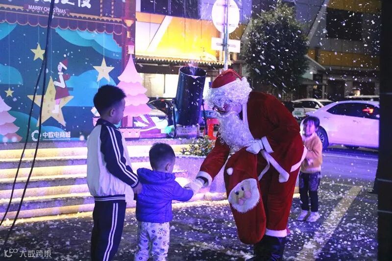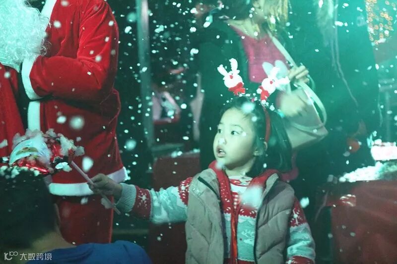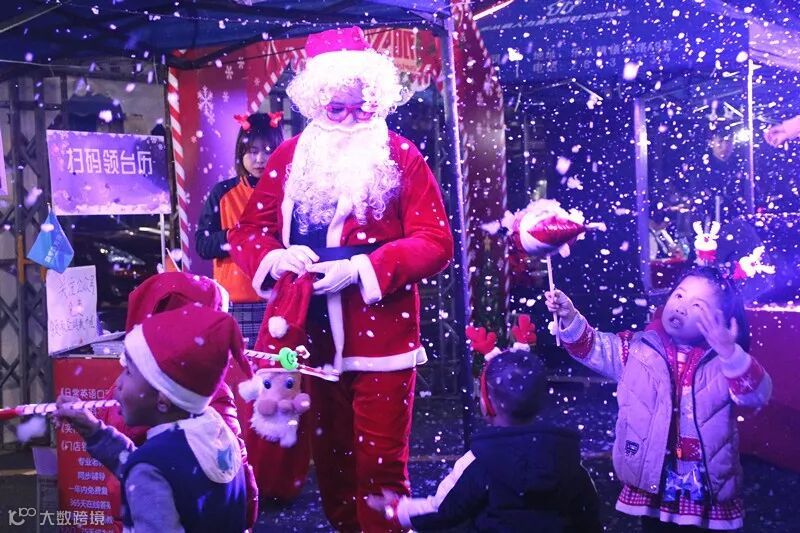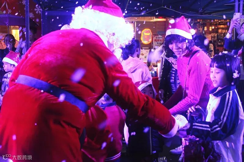 而现场的圣诞老人也成为了焦点