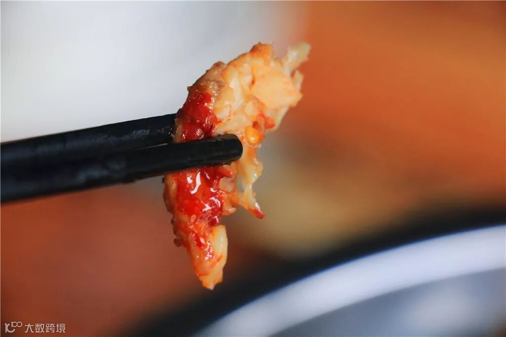 虾肉肉质饱满弹嫩,只有足够新鲜的龙虾才能有如此的品质,蘸一口香辣的汤底,鲜香可口还带着一丝丝的辣。