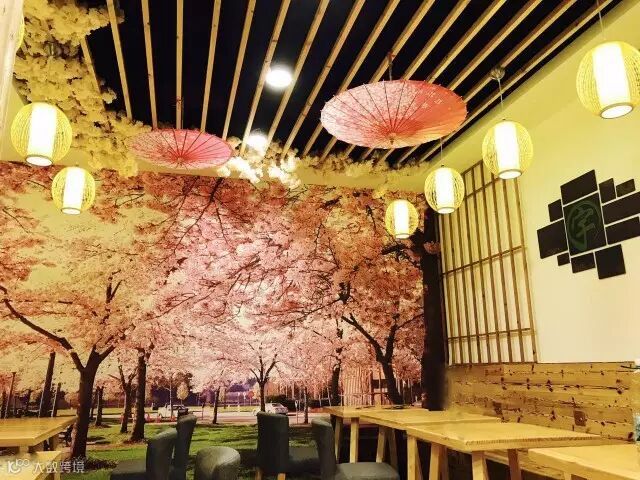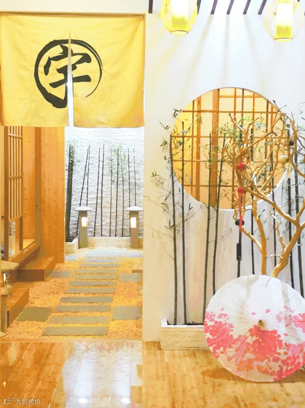 室内垂挂的油纸伞,还有随处可见的日本娃娃摆件...不经意间发现的每一个细节,都让第一印象的喜欢又多上一分。而且暖黄色的灯光温馨又安谧。