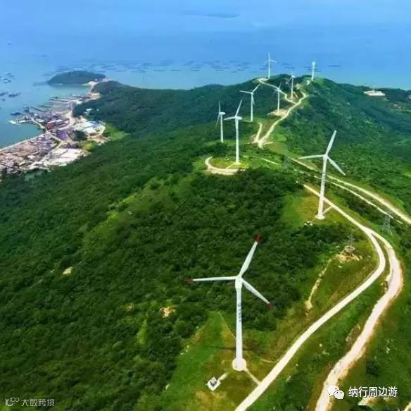 海陵岛闸坡飞鹅岭山上的一个新景点,它与大角山相连,远远望去一座座大风车屹立在山上,足足绵延五公里。吹着海风,大口呼吸着微咸的空气,在晚霞的衬托下,那缓缓转动的风车,似乎多了一份醉人的魔力。