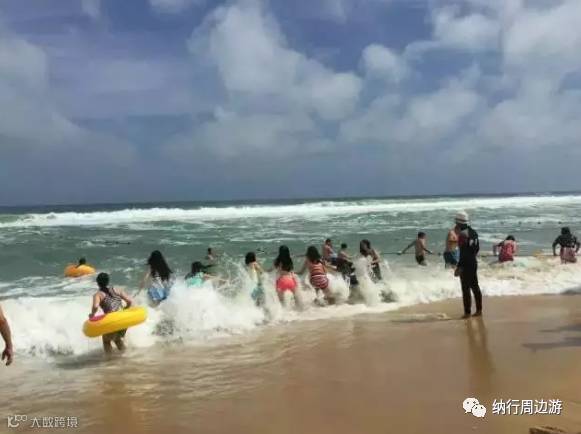 海浪汹涌澎湃,掀起的浪花有一米多高,手拉手,扎稳马步,等待海浪的冲击,却又怕被卷进海浪当中,真是又爱又恨(公共海滩不能游泳,要注意哦!)