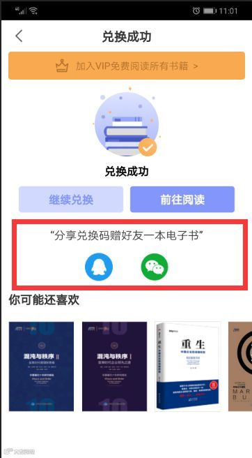 途径一:赠领/会员-兑换电子书,兑换成功后的页面如图所示可以将您刚才兑换的这本图书直接赠送给您的朋友: