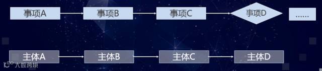 图3是流程连接,事项A、B、C,由不同的责任主体按照顺序分别做。最后画的是一个菱形,这是决策事项。