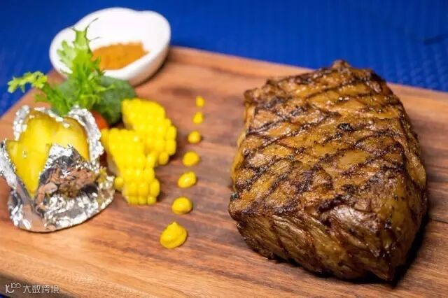 选用小牛肋排,肉质肥腴有筋腱,多汁耐嚼,西餐必备。带骨煎制,骨髓的精华也被煎香。