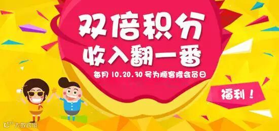 每月10、20、30号为顺客隆会员日,在顺客隆门店消费即可获赠双倍积分。积分可兑换会员卡充值金额,亦可兑换超值礼品!