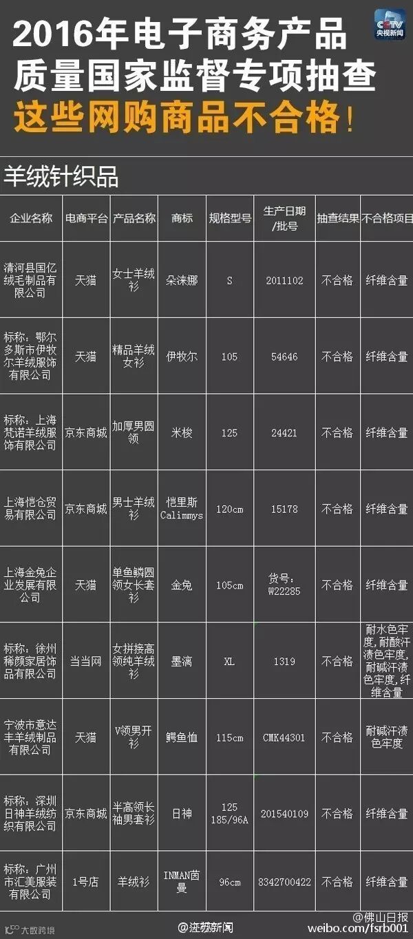 羊绒针织品不合格产品名单