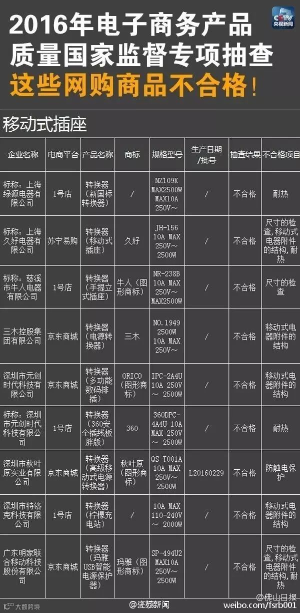 附:2016年10种电子商务产品质量国家监督专项抽查不合格产品名单