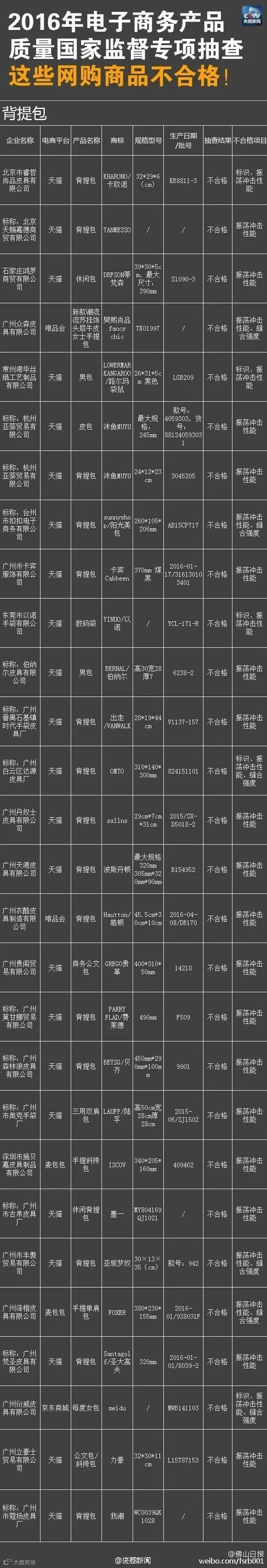 背提包不合格产品名单