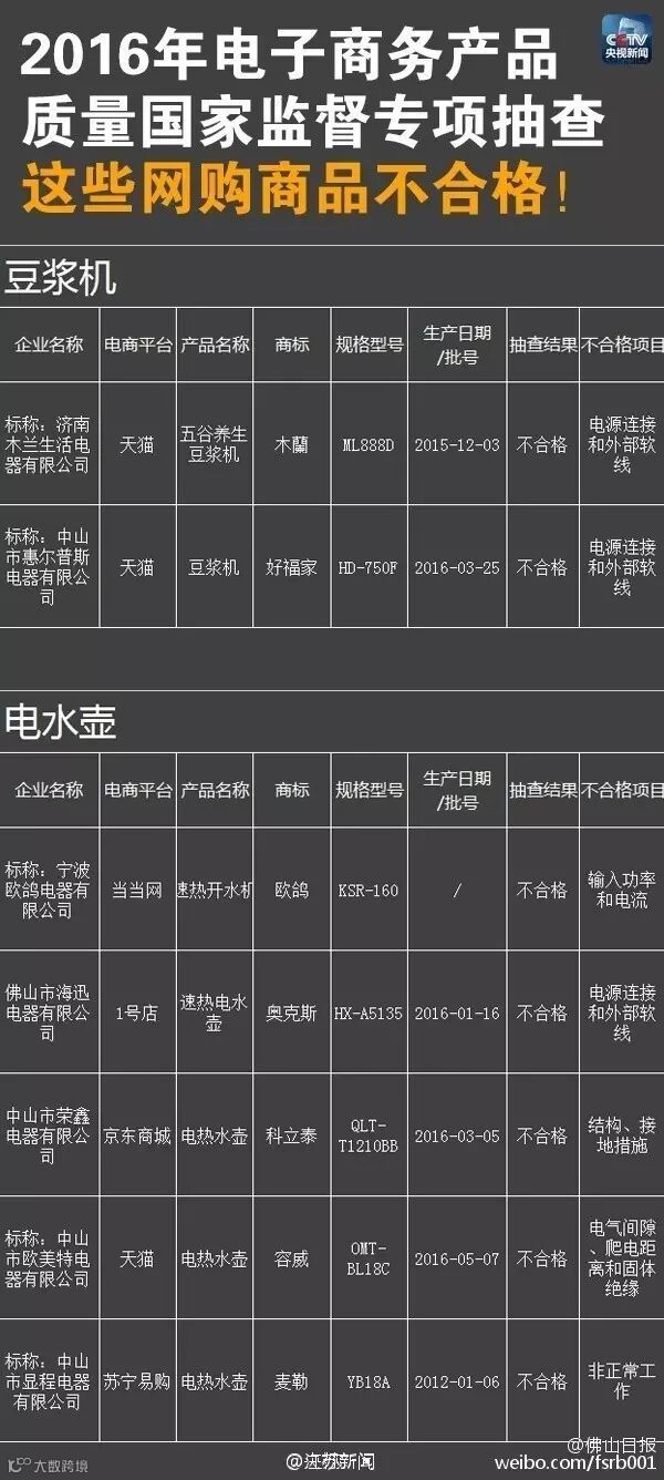 豆浆机+电水壶不合格产品名单
