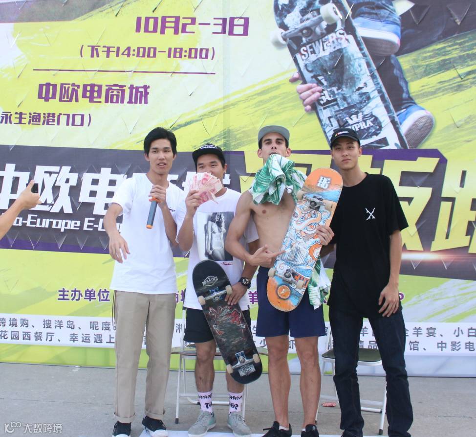 国庆佳节,中欧电商城携手IP SHOP举办了首届滑板趴,现场气氛嗨到爆!来自法国的选手阿特均获得两轮“阻碍计时赛”以及“组队skate赛”冠军,阿杰及CK则分别获得“阻碍计时赛”亚、季军。而“组队赛”冠军则由广州选手阿杰以及法国选手阿特获得。