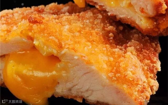 用刀一切,浓郁的芝士立刻涌出来,看得我口水直流啊~马上开吃!外皮酥脆得咔哒咔哒地响,鸡肉嫩滑得有鸡汁在齿间流出来,芝士在口腔融化,轻轻一拉,绵绵的芝士丝一条一条清晰可见,很足料!大厨请收下我的膝盖吧!