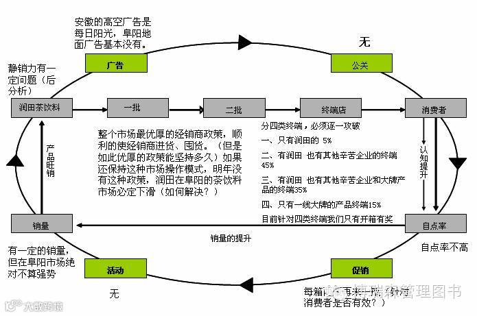 然而,让人始料不及的是,润田在F区的市场开拓却有些力不从心。一年下来,广告费、促销费、铺货费、人力物力投入很多,但效果并不理想。货铺下去了,也有一定市场销量,但市场表现却远远落后其他茶饮料,且部分终端网点卖完产品后便不再进货。这样的结果,大大出乎润田的预料,问题出在哪里呢?百思不得其解的润田将任务交给了联纵智达,希望我们能帮助他们找到一条解决问题的路径。