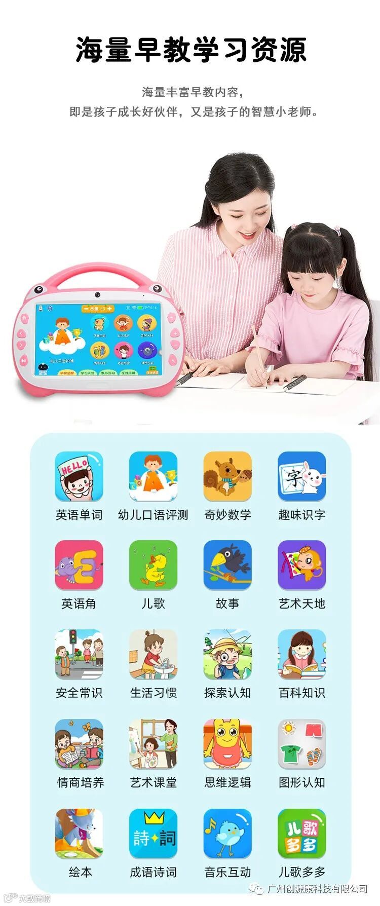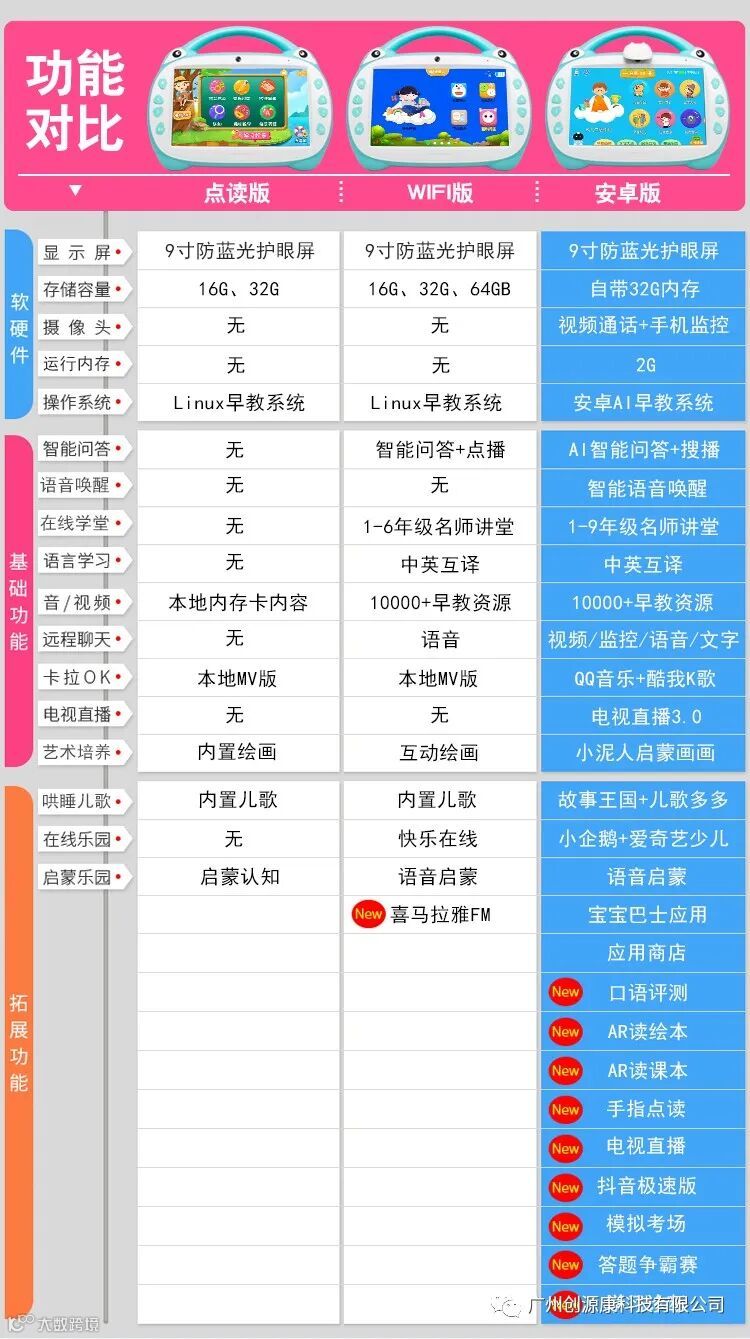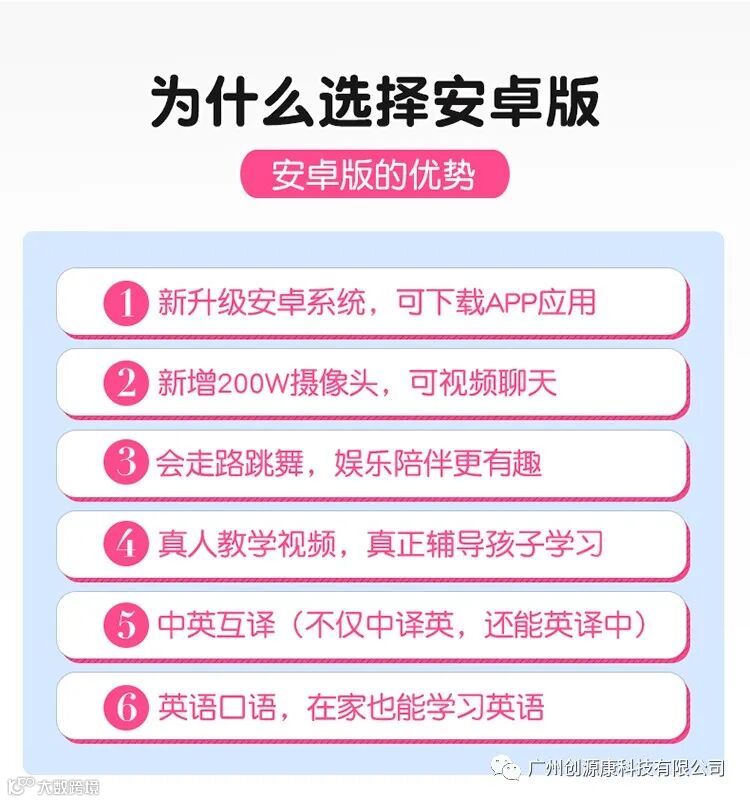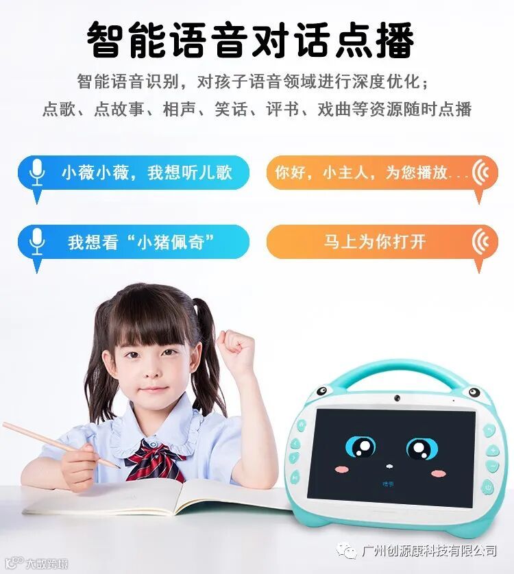 广州创源康科技有限公司,坐落于广州经济技术开发区,是一家以生产研发,智能机器人,绘本故事机,平板,电话手表,智能家居用品等,旗下有:“创源康” “启智者”系列品牌产品招商批发,方案开发,产品定制,开模加工。网站:www.cykgz.com