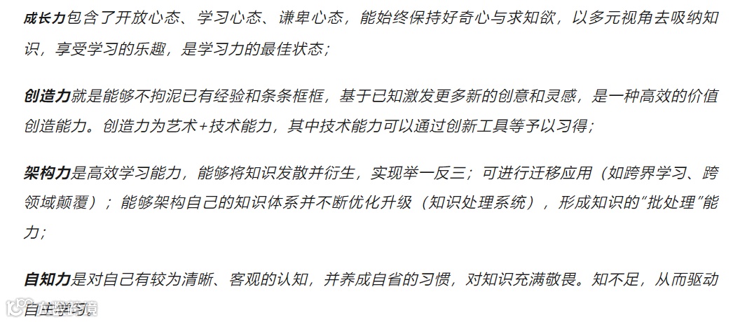 学习力:学习力是一个人的重要能力,决定你的成长速度与上限。