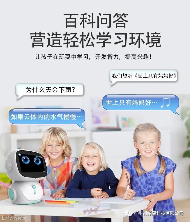 广州创源康科技有限公司,坐落于广州经济技术开发区,是一家以生产研发,智能机器人,绘本故事机,平板,电话手表,智能家居用品等,旗下有:“创源康” “启智者”系列品牌产品招商批发,方案开发,产品定制,开模加工。网站:www.cykgz.com
