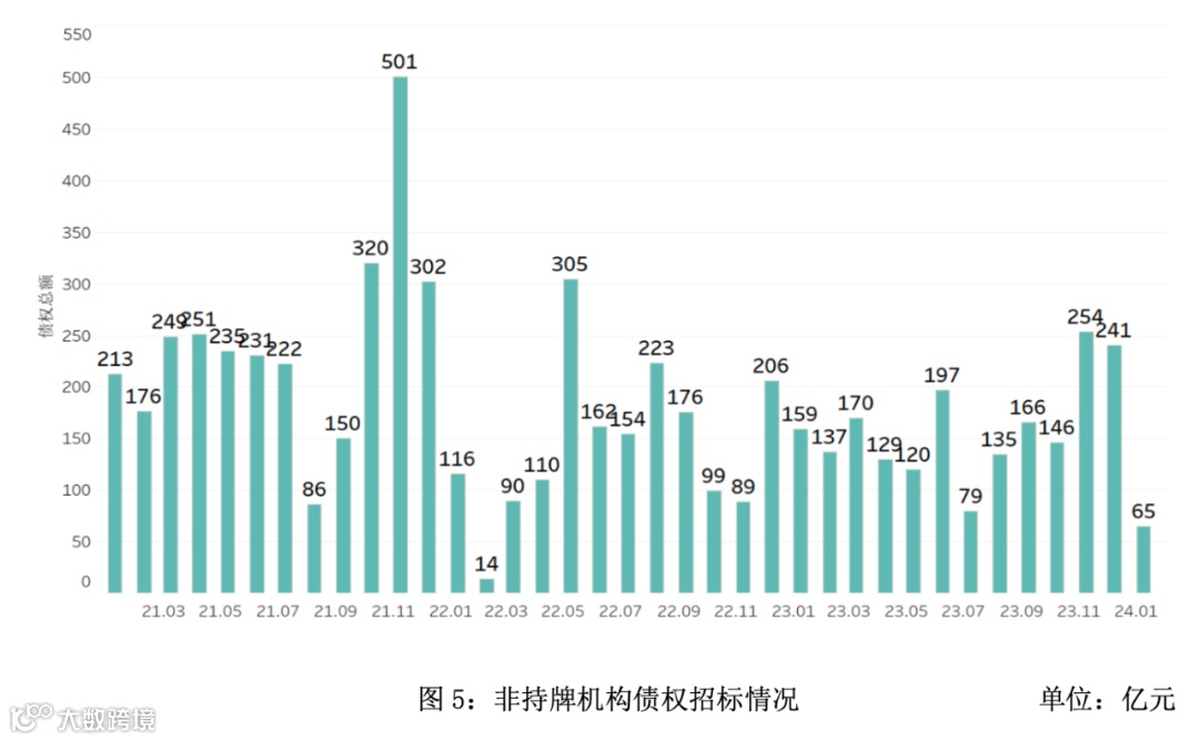 从非持牌机构的招标情况来看,2024年1月规模为65亿元,相比同期下降59.1%。